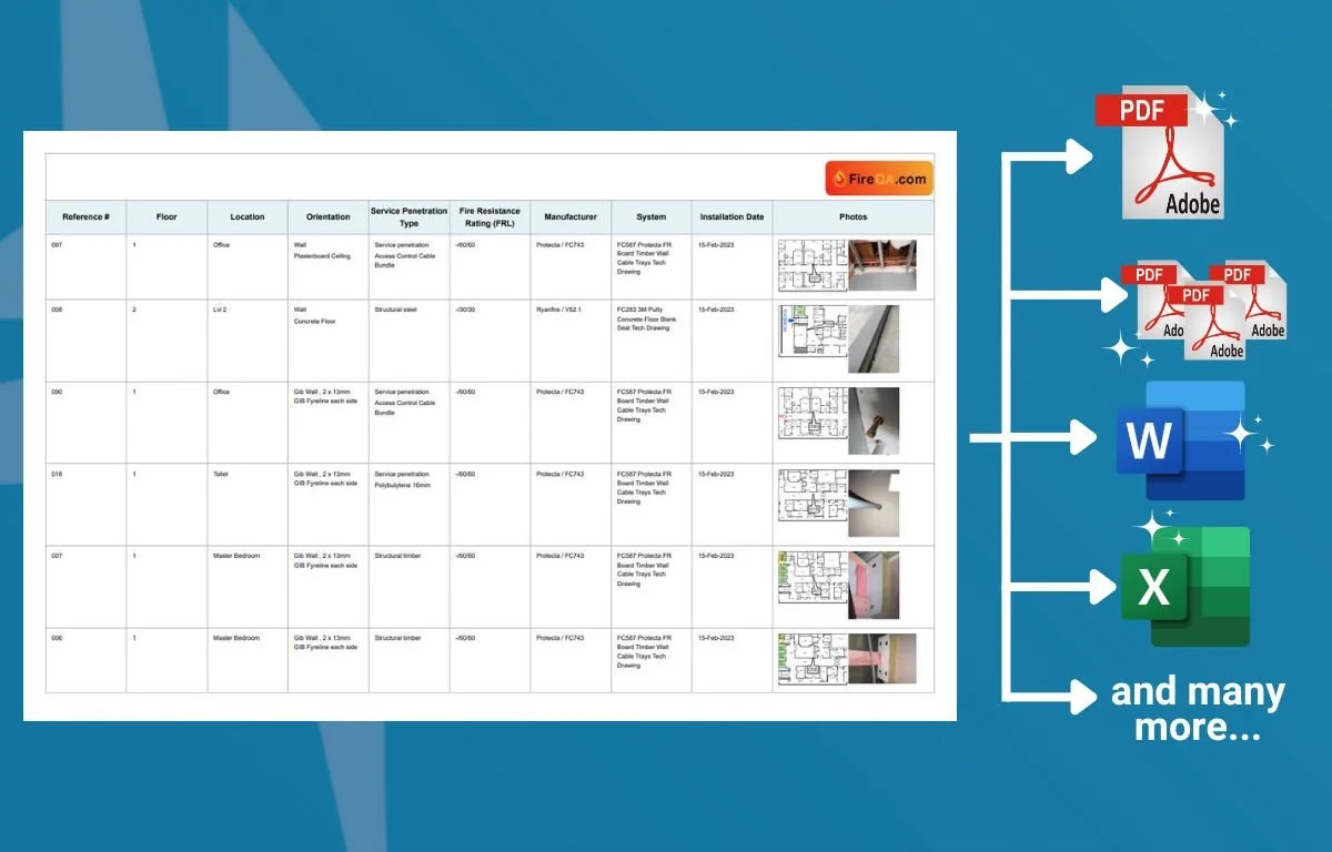 For example, your team may undertake a survey that also includes a site hazard identification before starting the main purpose of their visit. After the survey is submitted for reporting, the data is added into one report for your team with everything in it, one for the client, a report to hand to the lab or a simple register. The site hazard assessment information goes into a different report (e.g. a single PDF) and the H&S manager is notified. A certificate of compliance as a pdf for the council, say, is an easy one for us to do too.